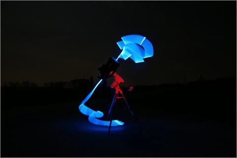 Und alsbald ging es dann los, als Hermann und ich unsere Ausrüstung verglichen, machte sich ein fettes Grinsen in unseren Gesichtern breit. Der Vergleich sei mir erlaubt, mancher astronomische Eigenbau sieht genauso aus, allerdings macht das nichts, da man diese Ausrüstung in der dunklen Nacht sowieso nicht sieht!! |