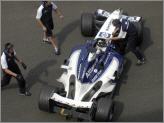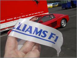 Ja, Ja, da war halli galli im Fahrerlager!! Wer hatte da wohl Schumis Ferrari mit Williamsaufkleber verschönert??? |